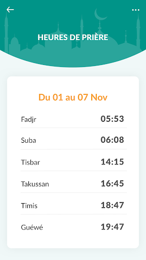 Dengan aplikasi Daradji, Anda dapat memiliki jam doa Senegal setiap minggu.