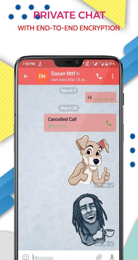 Express yourself with the free stickers and emojis available in this messenger app. Dark messenger also supports custom stickers and emojis for better chatting experience
