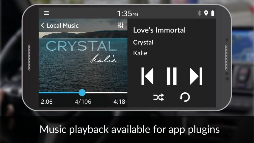 Automatically launch, play and control media apps directly from DashlinQ. The dashboard comes with media plugins to integrate music apps with your car including Spotify, Pandora, Google Music, Web Radio and music stored on the phone.
