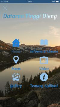 Aplikasi Dataran Tinggi Dieng ini merupakan aplikasi yang berisikan informasi-informasi mengenai kawasan wisata dataran tinggi dieng. Dalam aplikasi ini terdapat berbagai macam informasi yang meliputi informasi umum tentang kawasan wisata dieng, video mengenai wisata dieng serta maps untuk mempermudah dalam mencari lokasi wisata yang berada di kawasan wisata dataran tinggi dieng. Buat anda yang mempunyai hobi traveling aplikasi ini bisa menjadi referensi untuk anda sebagai informasi sebelum anda pergi ke kawasan wisata dataran tinggi dieng.