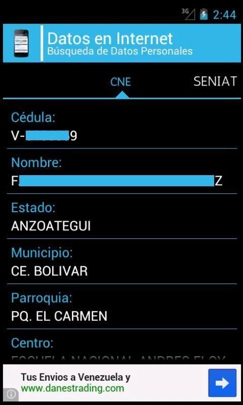 Ini adalah sebuah aplikasi yang membantu kita untuk menemukan informasi, baik CNE (data pemilih) dan beberapa orang lain, diberi nomor record baik. Hal ini sempit maka ini bekerja untuk rakyat Venezuela (dari Republik Bolivarian Venezuela, meskipun alat ini dapat digunakan di mana saja di planet ini).