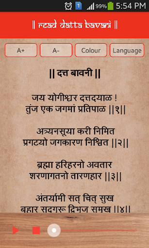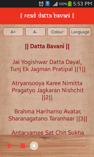 1.Pengguna dapat membaca Datta Bavani dalam font multicolor.Situs 2.Untuk menyesuaikan semua kelompok umur, opsi ukuran font variabel juga disediakan.