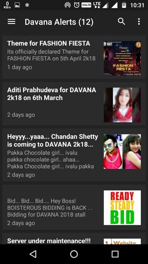 Davana adalah festival pemuda budaya tahunan Bapuji Institute Of Rekayasa dan Teknologi-Davangere. Acara 3 hari dijadwalkan pada 5,6,7 th April 2018. Berbagai kegiatan kuliah dan antar-perguruan tinggi mengarah ke ekstravaganza budaya. Banyak kompetisi glamor dan trendi seperti Dance, Ramp Walk, Mime menyala atmosfer. makanan berbagai, warung Juice untuk memenuhi selera Anda yang hadir. Pastikan bahwa Anda tidak melewatkan acara yang luar biasa ini. Sampai jumpa....