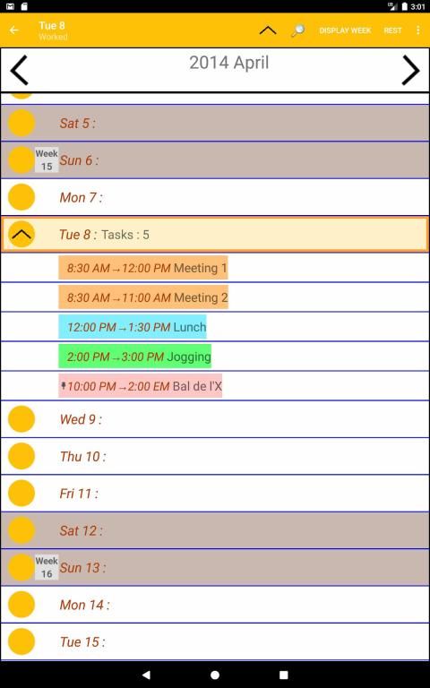 Semua data yang dimasukkan akan disimpan dalam database, dan Anda dapat melihat ringkasan hari, bulan dan secara keseluruhan. Ini bukan kalender tradisional, tetapi Anda juga dapat menggunakannya sebagai kalender jika Anda harus menangani paralelisme atau kehidupan malam ...