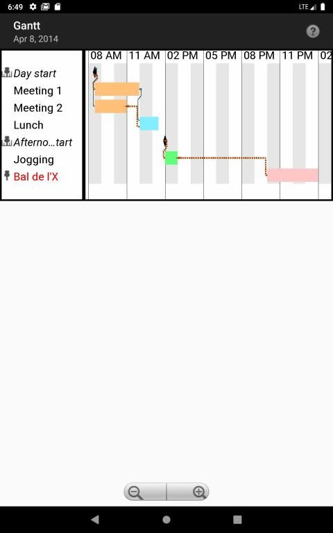 Tapi Anda juga dapat memperbaiki waktu beberapa tugas, menambahkan acara dan catatan, menambahkan link tambahan antara tugas dan acara ... dan kemudian menentukan tugas-tugas yang mengikuti, tumpang tindih, atau dilakukan secara paralel ...