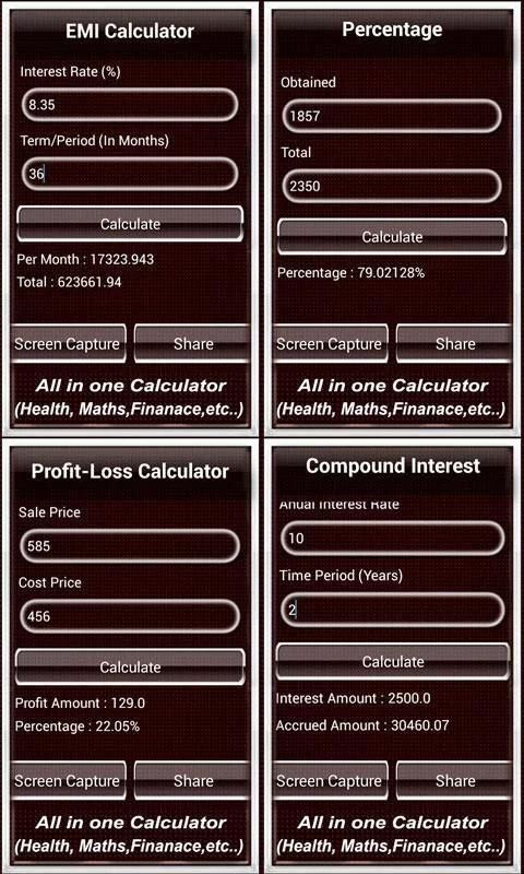 Hari ke hari Kalkulator App akan mendukung 35 jenis Perhitungan seperti Persentase, Kesehatan, Kalkulator Scientific, Konverter mata uang, Volume Perhitungan, Unit Dikonversi jenis. Ini adalah penggunaan kalkulator semua dalam satu alat untuk kegiatan sehari-hari. Anda memiliki pilihan untuk Simpan layar kalkulator dan juga berbagi opsi saham calculation.And Juga pilihan untuk browser yang Disimpan Perhitungan.