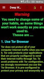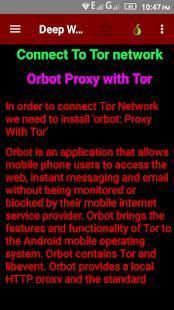 Selamat datang di dunia mendalam dan Dark. Web dalam adalah pada ponsel sekarang. Anda tidak perlu khawatir tentang PC atau browser khusus karena sekarang semuanya dalam satu App tunggal. Dalam aplikasi ini memiliki semua link korsleting dalam kategori bijaksana. Anda dapat menemukan apa pun di sini.