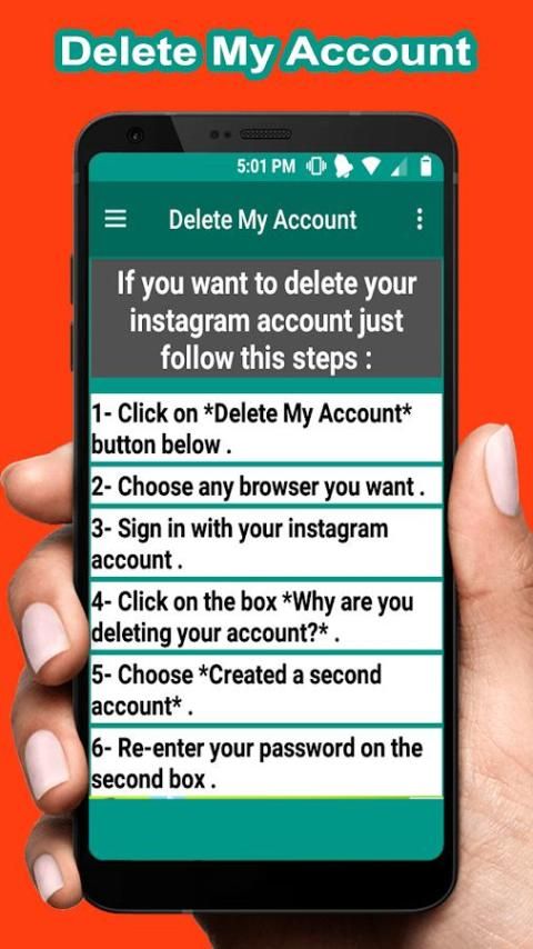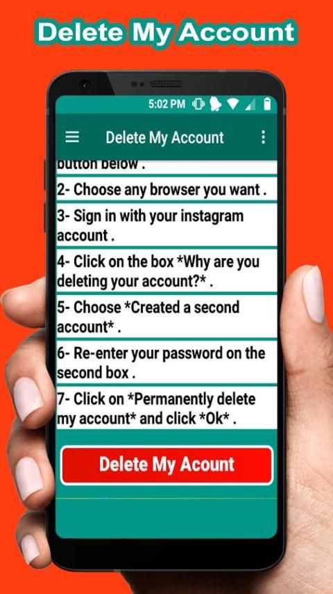 Sekarang Anda dapat menghapus akun Anda instagram atau facebook atau 12 situs lebih dan aplikasi dengan mengikuti langkah-langkah pada aplikasi kami Hapus Akun Saya