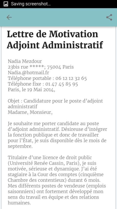 exemple de demande manuscrite pour emploi