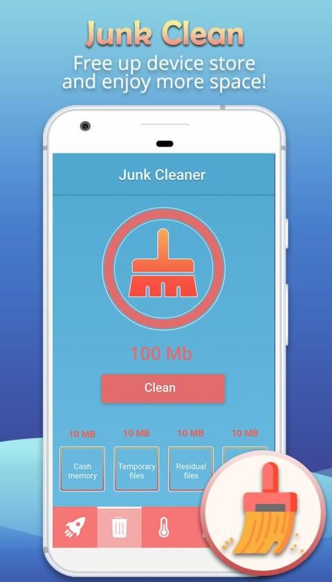 Fitur ini memungkinkan untuk menghapus sampah sistem, cache, dan file yang tidak digunakan lainnya, serta file APK lama. Gunakan satu ketuk untuk tetap membersihkan perangkat Anda.