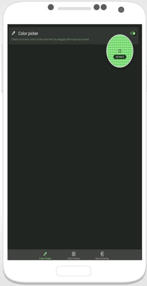 Color Picker - Gunakan jari Anda untuk menyeret kaca pembesar pembesar dan mengidentifikasi kode warna hex pada tingkat piksel Anda juga dapat menekan pada teks hex untuk menyalinnya ke clipboard.