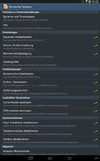 Aplikasi ini berisi keyboard Jerman yang memfasilitasi Anda untuk memasuki Umlaut dan nomor dan tanggal Jerman. (Z., hanya cocok untuk smartphone)