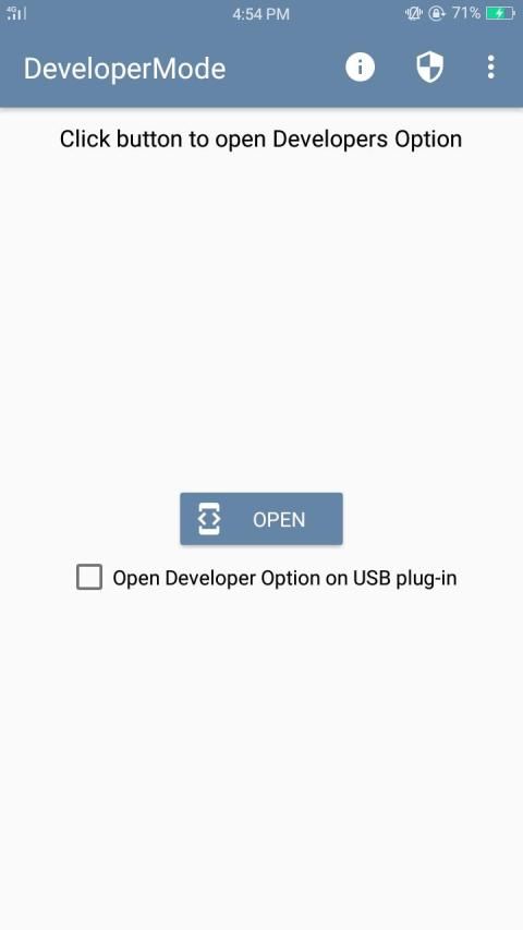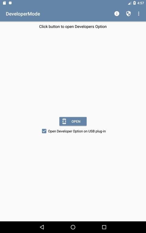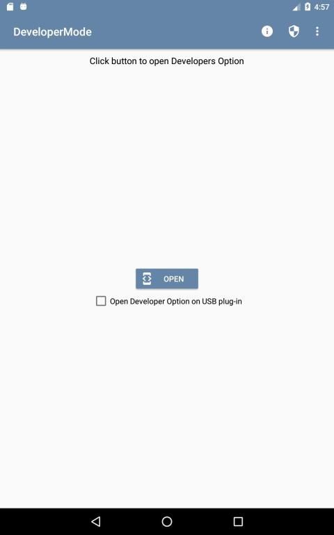 The app has a built-in widget. Create the widget on your screen, so that you can click the widget to open "Developers Option", even without opening the app.