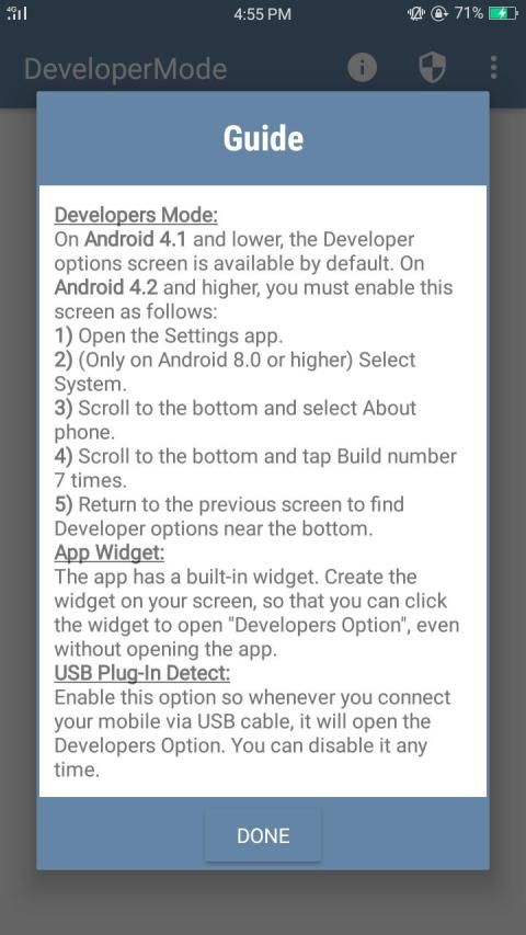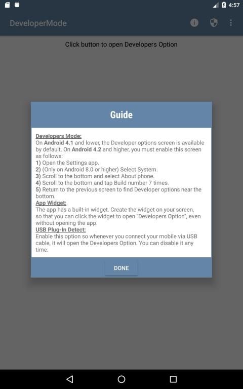 Cukup buka aplikasi, atau gunakan widgetnya untuk membuka Opsi Pengembang dengan cepat.