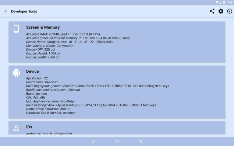 Aplikasi ini memberikan Anda data rinci tentang telepon Anda, seperti IMEI, MSISDN, IP (IPv4 & IPv6 yang didukung), resolusi layar, Google ID Iklan, API Versi dan banyak lagi!