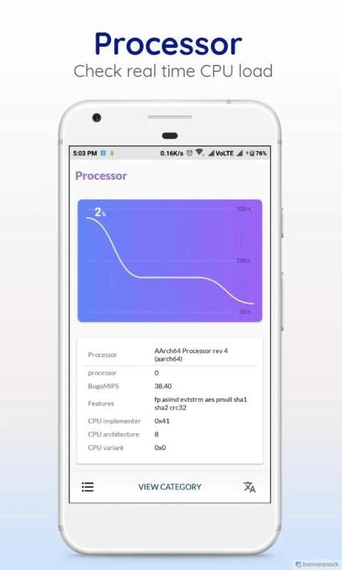 Prosesor, CPU, RAM, Penyimpanan, Kamera, Baterai, Jaringan, WiFi, SIM, Bluetooth, Layar, Resolusi layar, GPS, NFC, USB, Sensor, Mikrofon, Root, Bootloader, CDMA, GSM, Sidik Jari, VOIP, Audio & Video Info dukungan, Mode Pemandangan Kamera, Bingkai & Resolusi kamera, orientasi, Bloatware, Aplikasi default, Aplikasi sistem, Aplikasi yang dipasang pengguna, alamat Mac, SSID, kecepatan tautan, alamat IP, info perangkat OTG, tegangan Baterai, Kesehatan baterai, Jenis baterai, Versi OS, Papan, Produsen, Nomor model