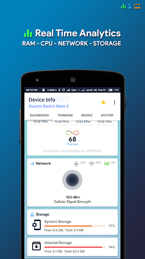 👉Device Info is a powerful and highly informative android application which provides complete information about any Smartphone Device from top to bottom with its smart user interfaces. Device Info includes information about CPU, RAM, OS, Sensors, Storage, Battery, SIM, Bluetooth, Installed Apps, System Apps, Display, Camera, etc.