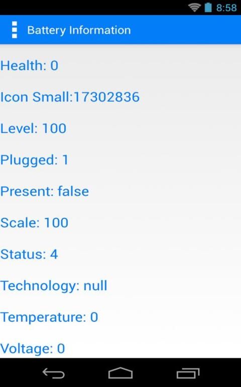 Informasi baterai Anda seperti Kesehatan, Level, Icon Kecil, Terpasang, Present, Skala, Status, Teknologi, Suhu, Tegangan dan lebih akan tersedia untuk Anda.