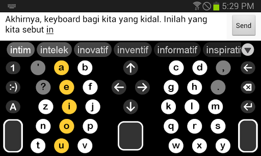 · Dengan tata letak yang dapat disesuaikan untuk semua gaya teks – satu jari, satu jempol, dua jempol… bahkan satu tangan
