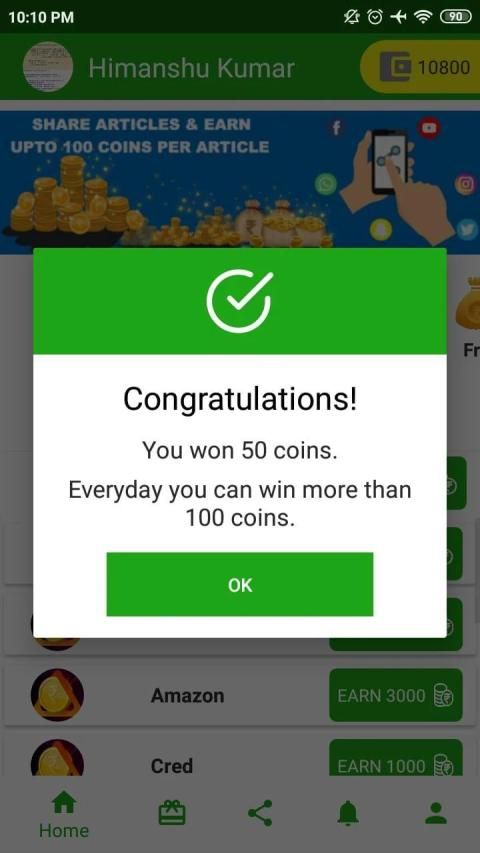 1)100 coins when your friend read article. Earn 500 Coins on day 1 and 1000 coins on day 2