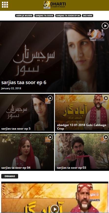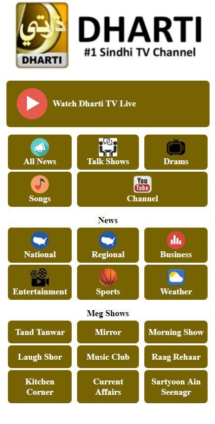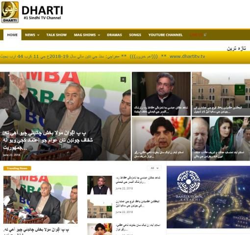 Dharti TV Television Network (Dharti TV) is the first private Sindhi TV channel. This Channel is general entertainment Channel which covers Dramas, News, Music and Current Affairs.
