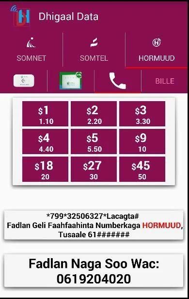 Dhigaal iibso Somnet, Hormuud iyo Somtel Data, si fudud oo amaano leh.