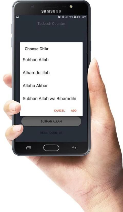 Juga termasuk Penghitung Dzikir di mana Anda dapat menggunakan Dzikir yang ada atau mengetik sendiri.