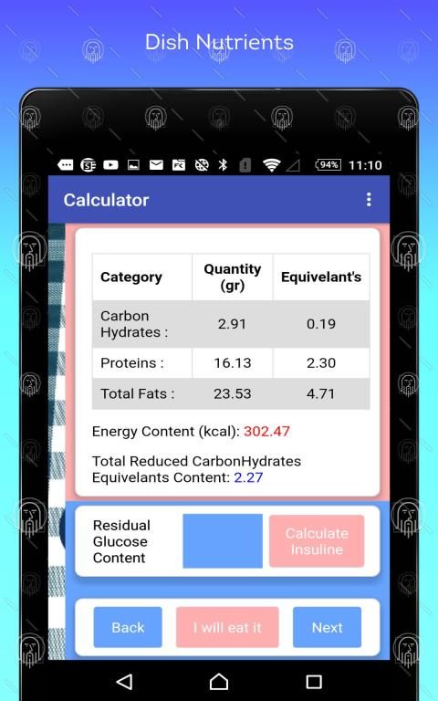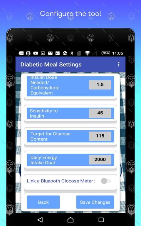 Diabetic Meal App adalah aplikasi untuk perangkat seluler dengan sistem operasi android untuk digunakan terutama dari pasien yang menderita diabetes dan dirawat dengan suntikan insulin.