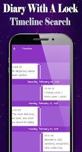 Anda juga dapat melihat grafik entri buku harian sepanjang waktu. App kunci Diary Pribadi yang dibuat tersedia sebagai sebuah Timeline. Anda dapat menggunakan pengaturan lanjutan untuk mengubah font, nomor kunci Set, Backup dan Restore Diary kunci App. dan klik kartu Diary dalam daftar untuk melihat buku harian kunci App.