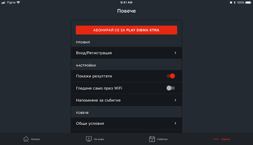 Aplikasi Play Diema Xtra tersedia di Bulgaria dan dapat digunakan baik melalui jaringan WiFi dan seluler 3G/4G dengan kualitas adaptif, agar tidak melewatkan satu detik dari tontonan.