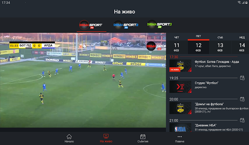 Tidak lagi peduli di mana Anda berada saat Anda ingin mengalami keajaiban acara olahraga paling spektakuler di udara Bulgaria karena permainan tersebut Langganan Diema Xtra memberi Anda akses tak terbatas ke saluran Diema Sport dan Diema Sport 2. Tonton perangkat seluler atau komputer pilihan Anda dalam HD dengan kualitas gambar yang sangat baik dan menu yang nyaman dalam bahasa Bulgaria.