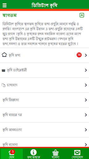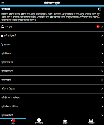 Selamat datang di pertanian digital, teknologi informasi di bidang pertanian, membawa kemakmuran dan kemajuan. Pembangunan pertanian Bangladesh adalah upaya kecil untuk menerapkan teknologi informasi. Platform terbuka untuk aplikasi web bisnis sosial pertama dan pengembangan pertanian para petani. Di mana informasi pertanian, masalah dan solusinya akan berada di tangan petani.