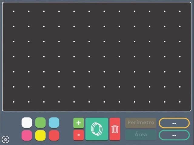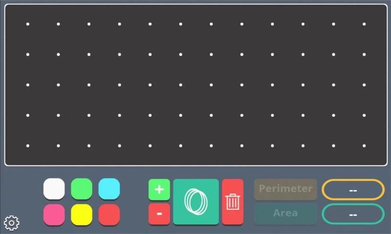 Sebuah geoboard digunakan untuk mengeksplorasi konsep-konsep dasar di bidang geometri seperti keliling, luas dan karakteristik segitiga dan poligon.