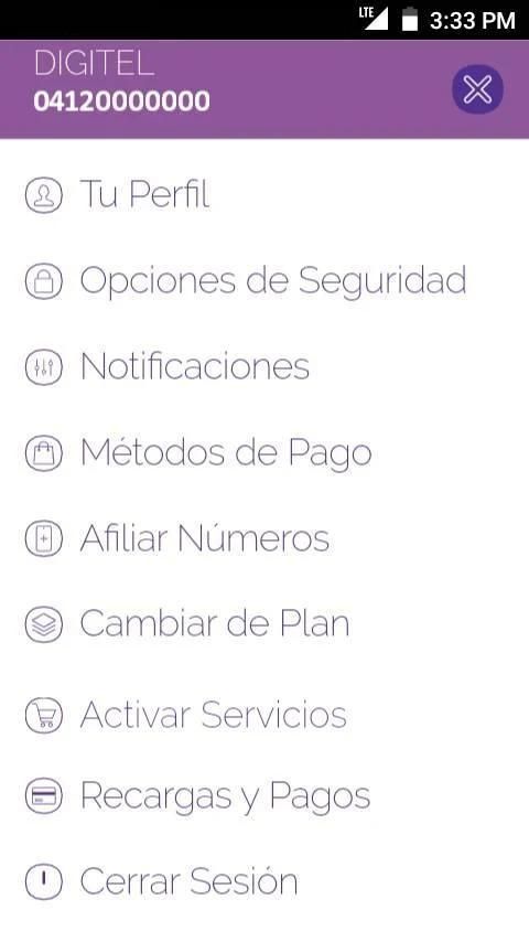 Consulta tu Línea, Planes y Servicios, Recargas y Pagos.