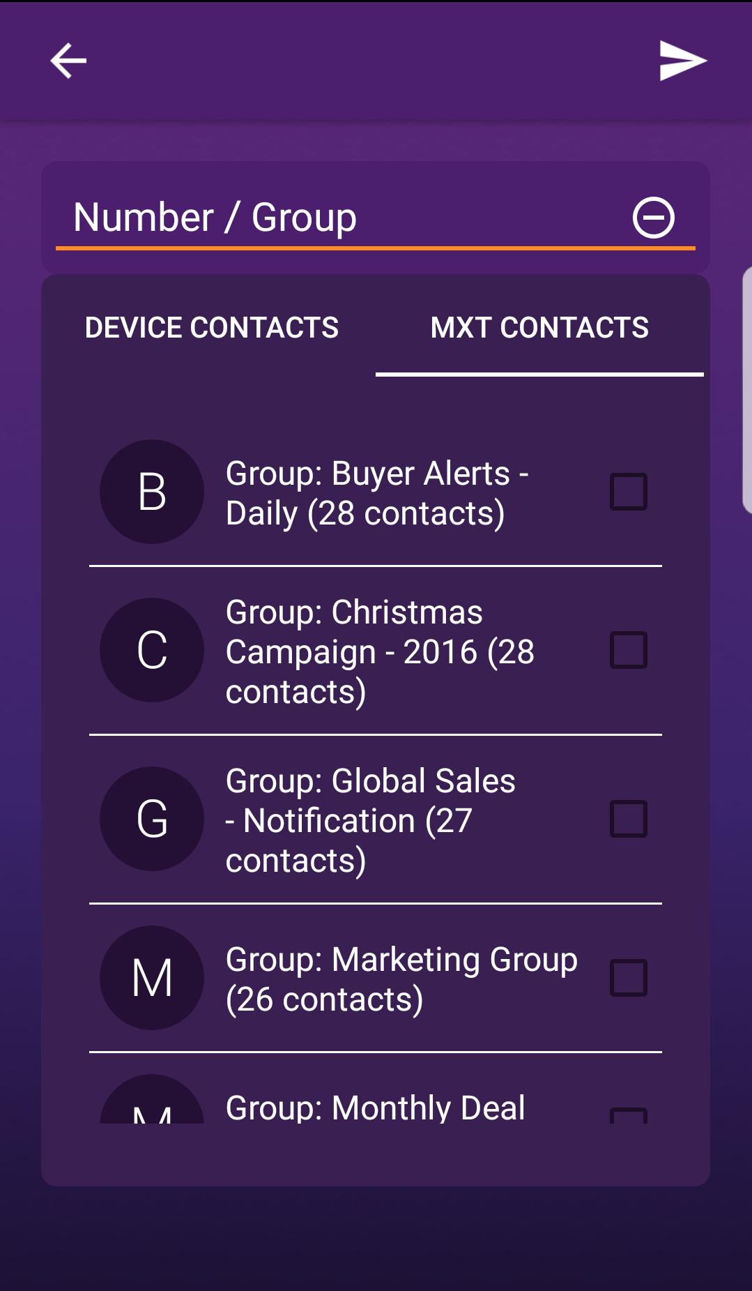 - Send Message allows you to send messages to your phone contacts in bulk or send messages to your contacts stored on the SMSGlobal platform