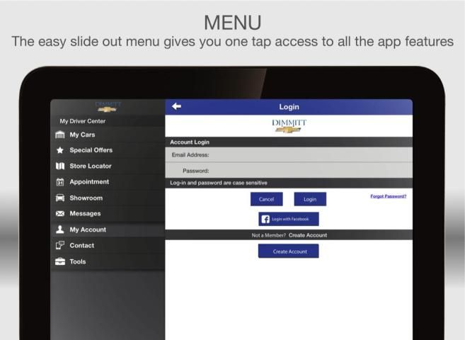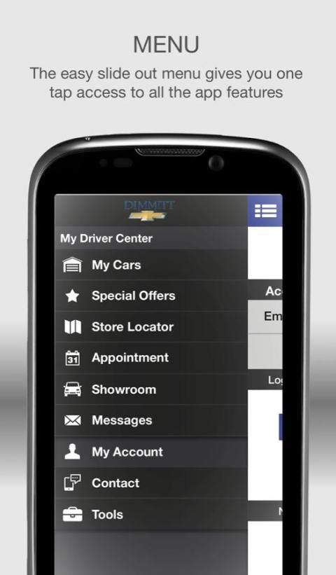 Membuat pengalaman kepemilikan kendaraan Anda dengan mudah dengan aplikasi seluler Dimmitt Chevrolet gratis. aplikasi kaya fitur ini memungkinkan Anda untuk mendapatkan hasil maksimal dari kendaraan Anda dengan membantu Anda untuk menjaga dan mengatur rincian mobil penting seperti sejarah layanan, serta menghemat uang dengan menawarkan ponsel dan kupon!