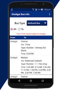 This app provide all information about Dindigul Mofussil bus and Town bus.