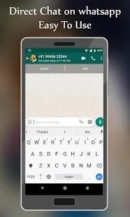 Direct Chat for WhatsApp is the best app that is designed to send messages to any numbers those are not being saved in your contacts. Just enter the country code followed by number and chat directly with anyone without saving their numbers to your contacts for chats and messages.