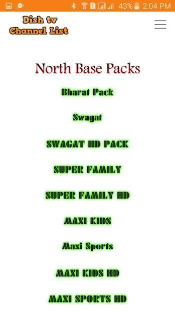*North Packages Channels LIst