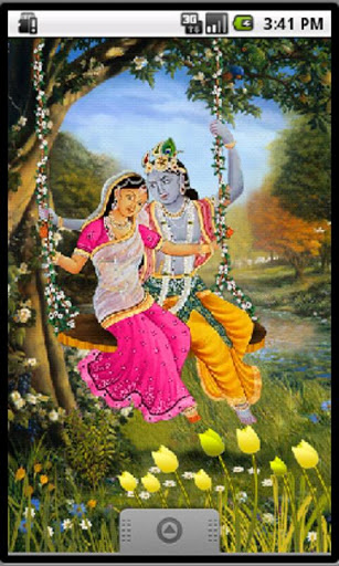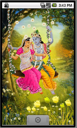 This live wallpaper depicts divine lovers Radhe Krishna playing on the swing. On touch drag flowers are showered on the divine couple who light up with a divine glow and the flowers blossom. The whole view is enchanting and takes us into the world of pure love bliss.