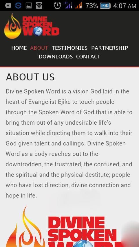 Divine Spoken Word adalah visi Allah meletakkan di jantung Evangelist Ejike untuk menyentuh orang melalui Spoken Firman Tuhan yang mampu membawa mereka keluar dari situasi kehidupan yang tidak diinginkan sambil mengarahkan mereka untuk berjalan ke Allah mereka diberikan bakat dan pemanggilan. Divine Spoken Word sebagai tubuh menjangkau kaum tertindas, frustrasi, bingung, dan spiritual dan miskin fisik; orang-orang yang telah kehilangan arah, koneksi ilahi dan berharap dalam hidup.