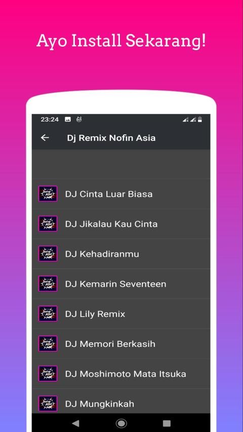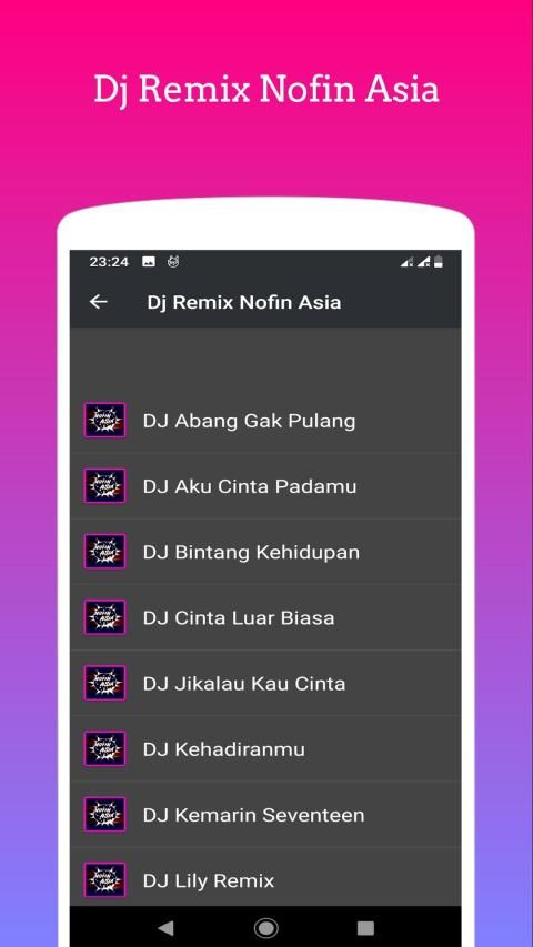 Siapa yang nungguin lagu-lagunya DJ Remix Nofin Asia? Yup, aplikasi ini sekarang bisa kamu download buat dengerin full album lagu remixnya DJ Nofin Asia. Aplikasi DJ Nofin Asia ini offline jadi ngga perlu takut kuot internet kamu hilang, dan pastinya aplikasi ini full bass.