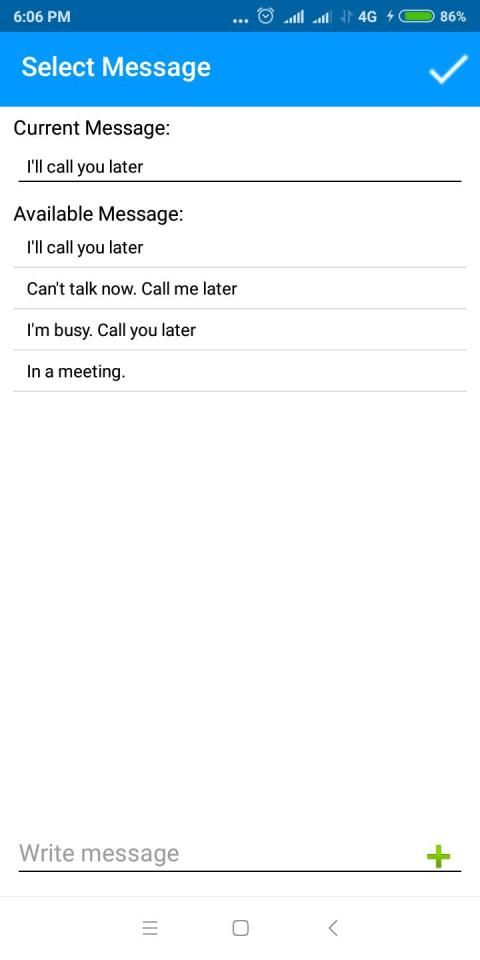This application helps you to avoid calls and send a customised SMS in your busiest hours. At the same time notify the caller that you are busy and can not interact with them at that point of time.