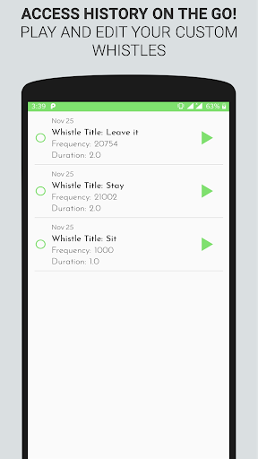 Aplikasi Whistle Anjing menghasilkan frekuensi mulai dari 200 hingga 22.000 Hertz. Anjing mendengar suara itu dengan sangat baik, dan suara-suara itu selalu sama. Itu membuatnya sangat mudah untuk mengajarkan trik baru anjing Anda.
