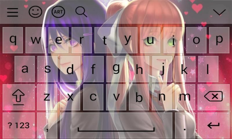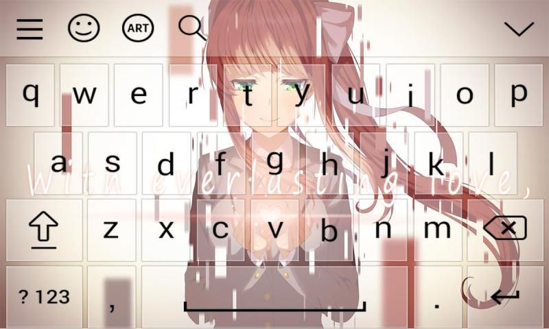 Sekarang saatnya untuk mengubah keyboard android membosankan Anda dengan keyboard Doki klub sastra doki, Pergi sekarang menggunakan aplikasi gratis ini memungkinkan Anda untuk mendapatkan pengalaman mengobrol biasa dengan banyak emoji dan gaya font + wallpaper Anime keren, aplikasi Keyboard anime didukung semua mengobrol aplikasi dan game juga bekerja apapun di mana Anda ingin menggunakan keyboard.