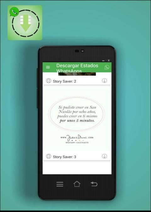 Cara untuk mendownload negara whatsapp? baik dengan aplikasi kami Anda dapat men-download, menyimpan dan berbagi dengan teman Anda dengan mudah, memungkinkan Anda untuk membuat galeri download dan galeri negara bagian kontak Anda secara real time, untuk men-download sebuah negara hanya perlu memberikan klik tanda panah "download".