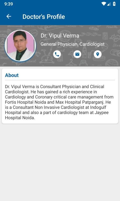 Dr. Vipul Verma is Consultant Physician and Clinical Cardiologist. He has gained a rich experience in Cardiology and Coronary critical care management from Fortis Hospital Noida and Max Hospital Patparganj. He is a Consultant Non Invasive Cardiologist at Indogulf Hospital and also a part of cardiology team at Jaypee Hospital Noida.