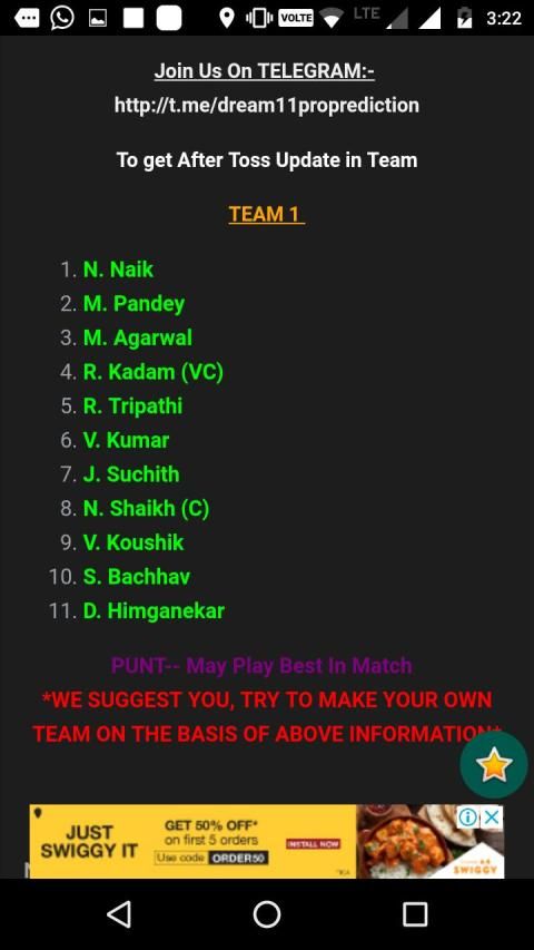 Here you will be notified when ever new match MyTeam11 & Dream11 Team is update.