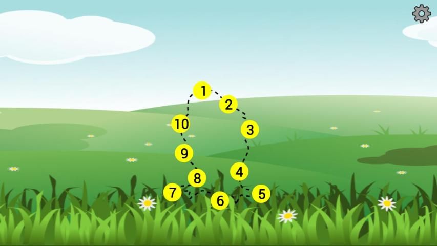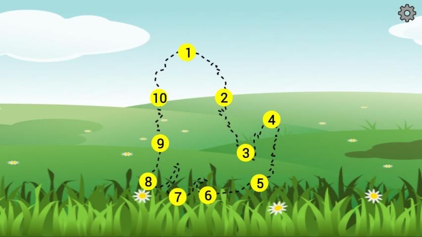 game edukasi yang menarik "Draw Dots". Gambar hewan, "hidup", jika anak tersebut dalam urutan yang benar menghubungkan titik-titik yang ditandai angka.