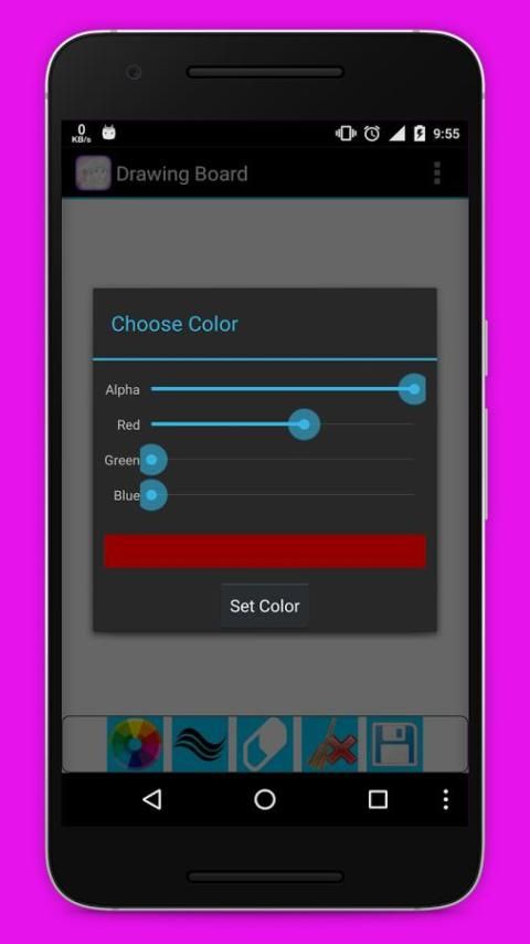 Menggambar Dewan mari kita Anda memilih dari beberapa warna yang berbeda, ukuran kuas, dan ukuran penghapus dan sejarah yang jelas cepat dan untuk menyimpan gambar Anda ke dalam penyimpanan perangkat Anda.